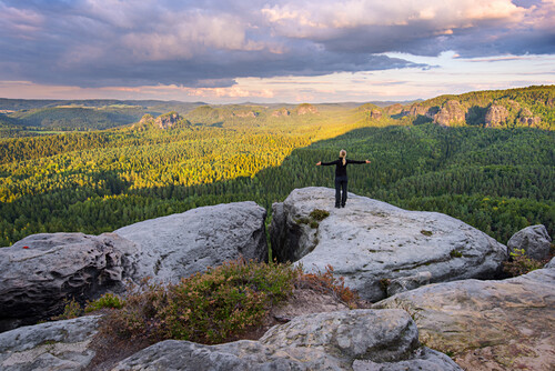 Junge Frau Aussicht Berge Bild Kaufen 71142574
