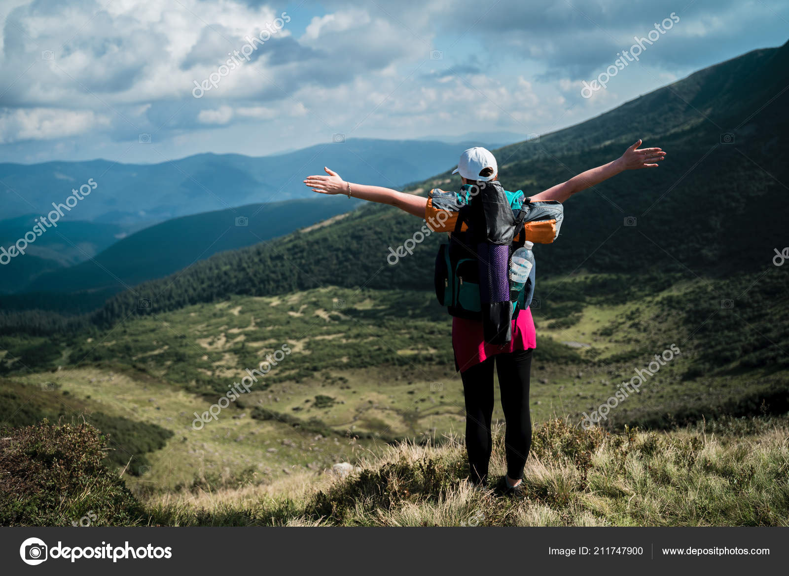 Junge Frau Wanderer Aussicht Geniessen Stockfoto C Lzf