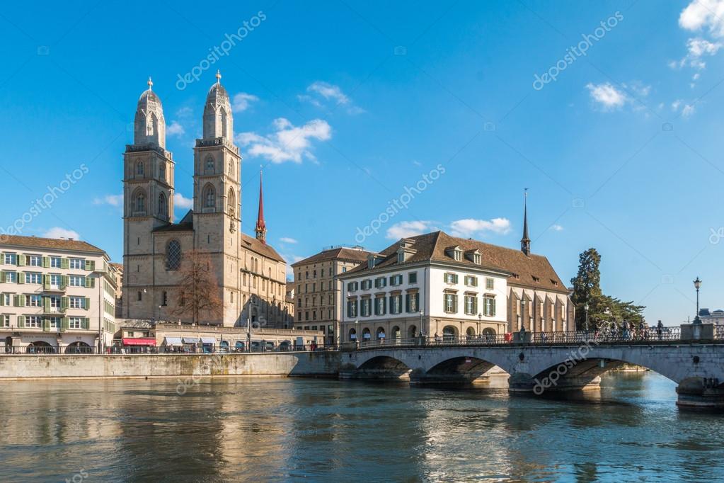 Downtown City Grobe Munster Aussicht Von Zurich Schweiz
